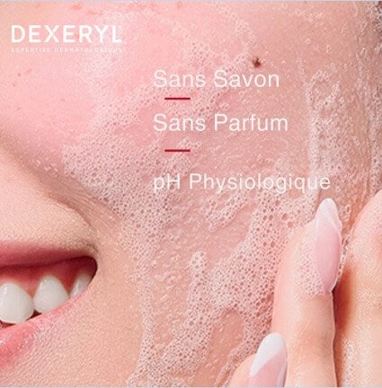 Issu de l’expertise dermatologique DEXERYL, le Gel Moussant Anti-Imperfections DEXECLEAR 2-en-1 nettoie en profondeur les peaux à tendance acnéique et réduit les boutons. Le Gel moussant anti-imperfections Dexeclear réduit de 90%* l’excès de sébum dès la première application grâce à sa formule contenant 2% d’acide salicylique et de 64 % les points blancs après un mois d’utilisation*. Sa formule non comédogène, sans savon, respecte la barrière cutanée et maintient l’équilibre physiologique de la peau. Composé à 86 % d’ingrédients naturels, le Gel Moussant Anti-Imperfections DEXECLEAR offre un effet rafraîchissant, et sa texture gel se transforme en une mousse légère lors de l’application, nettoyant délicatement le visage. 91 % des utilisateurs constatent une diminution de la taille des pores**.