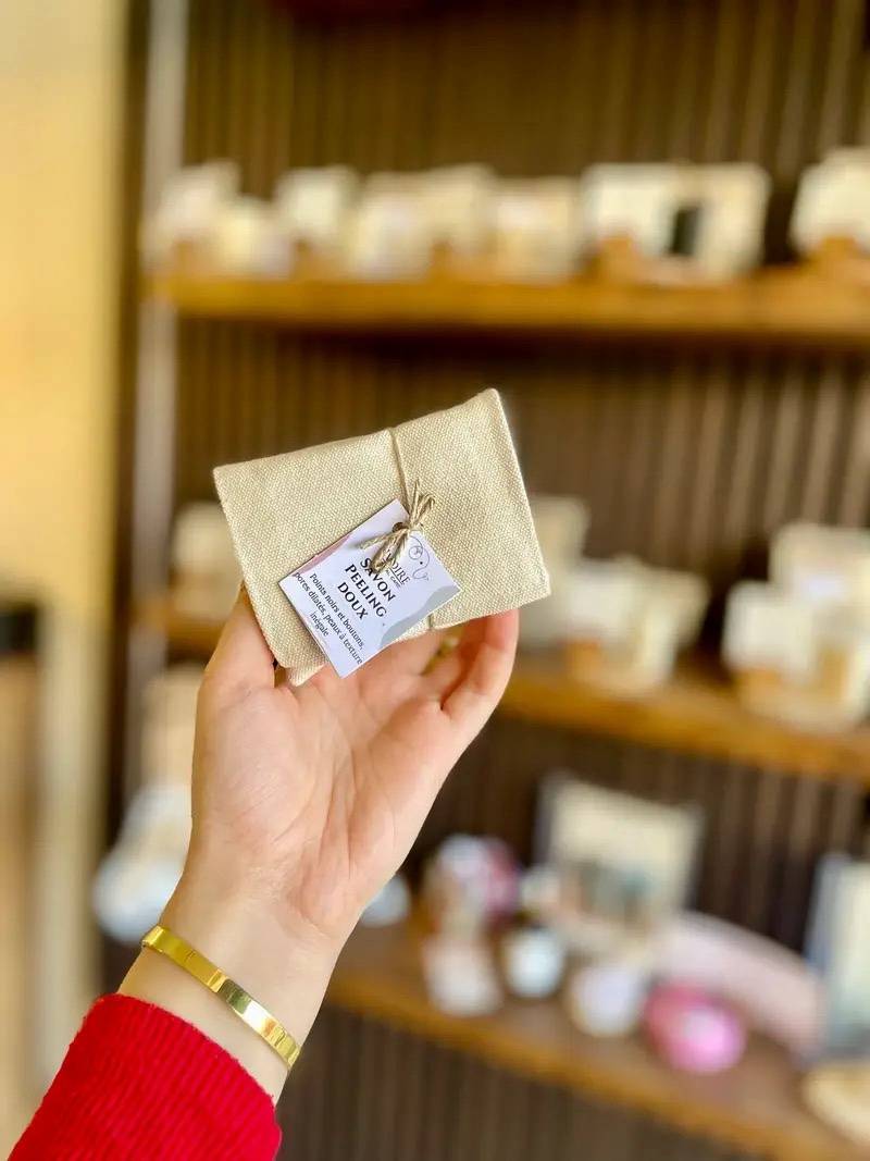 - Emballage en tissu réutilisable avec possibilité de retourner au magasin.